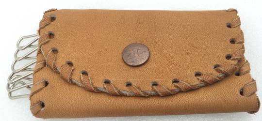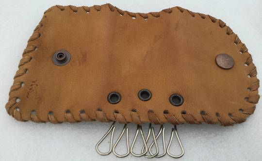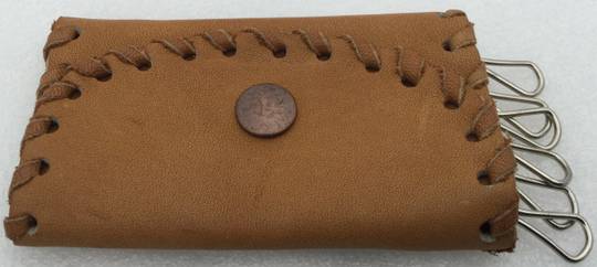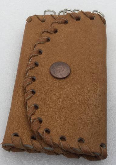 Ancien Porte-Clés en Cuir Brun Fabriqué à la Main :